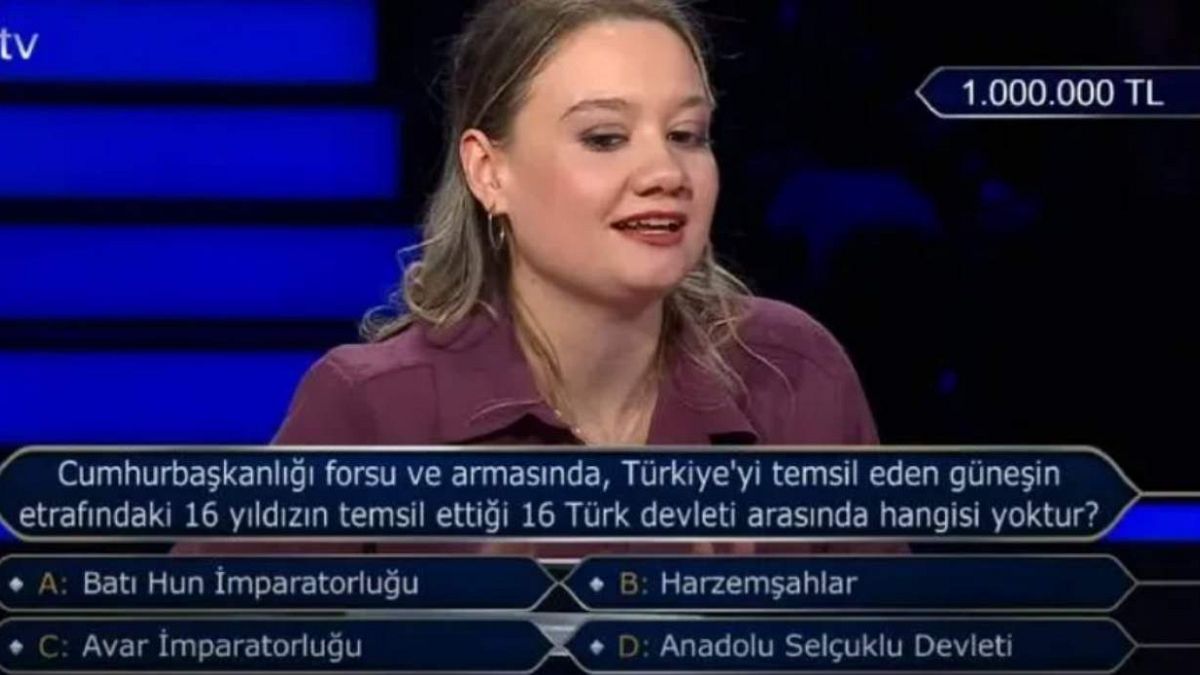 Birincilik ödülü için sorulan tarihi soru şuydu: “Cumhurbaşkanlığı amblemi ve arması üzerinde Türkiye'yi temsil eden güneşin etrafındaki 16 yıldız, 16 Türk devletinden hangisini temsil etmiyor?”
